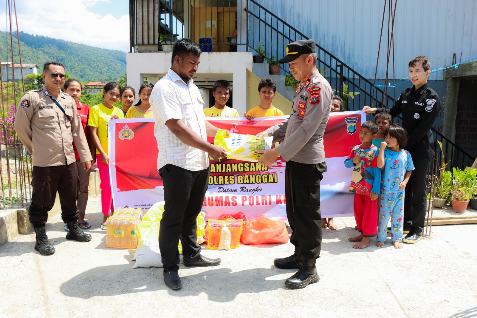 HUT Humas Polri ke-72, Polres Banggai Bagikan Bansos ke Panti Asuhan Axel Mozes