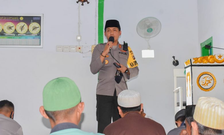 Luwuk.Today, Kapolres Banggai AKBP Satria Adrie Vibrianto SIK MH, menggelar Safari Jumat Kamtibmas di Masjid Al-Karim, Kelurahan Keleke, Kecamatan Luwuk, Jumat (5/3/2021).
