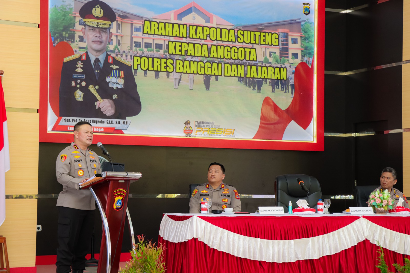 Dalam kesempatan kunjungannya, Kapolda Sulteng melakukan tatap muka kepada seluruh jajaran Polres Banggai di Aula Maleo Polres yang terletak di Bukit Halimun Kecamatan Luwuk Selatan.
