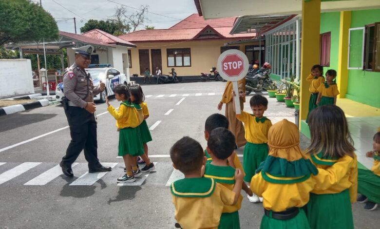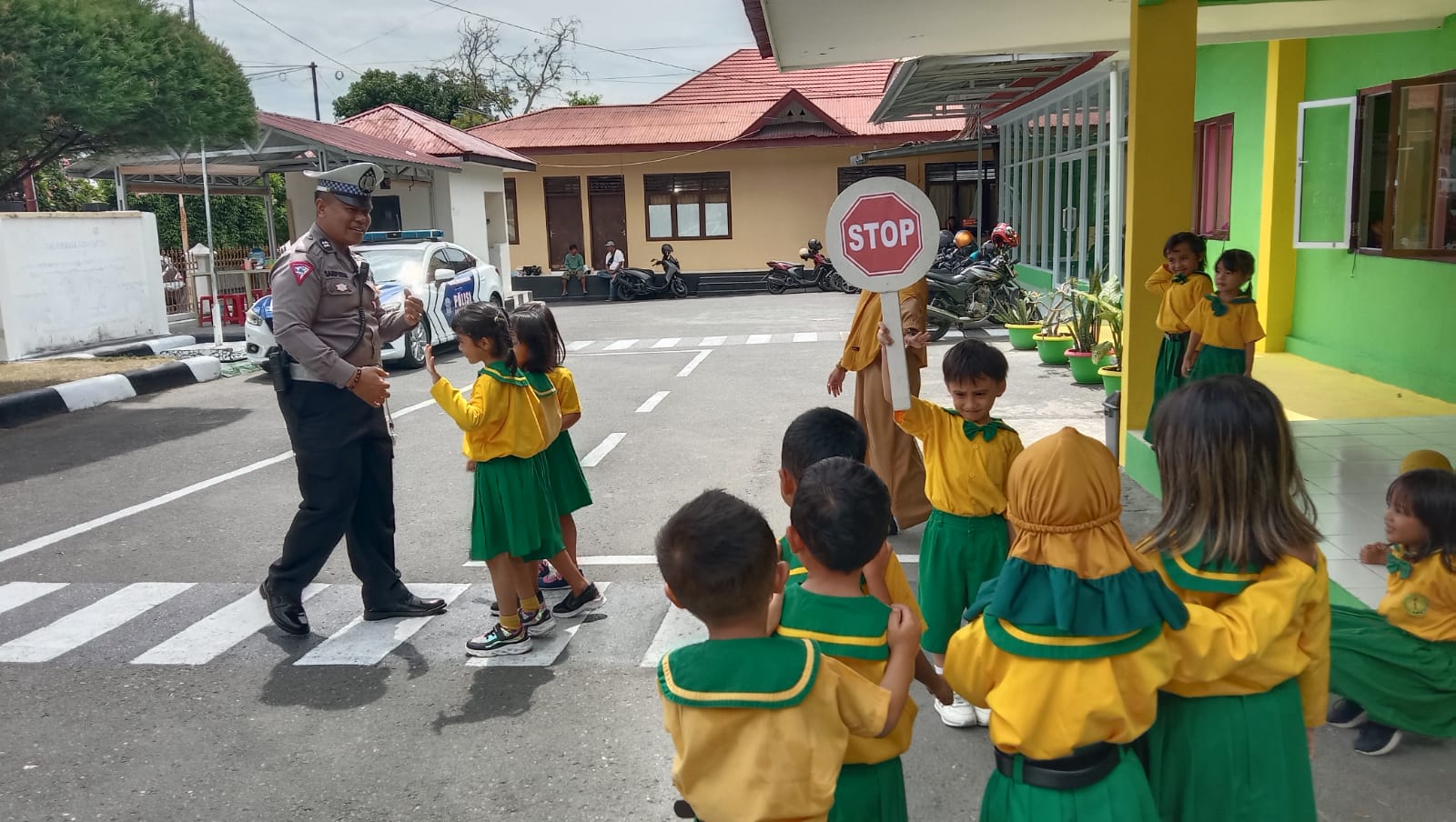 Kegiatan yang dipimpin Kanit Kamsel Aiptu Saripudin M.B dalam rangka untuk mengenalkan profesi kepolisian dan menanamkan rasa sadar terhadap peraturan lalu lintas sejak usia dini.