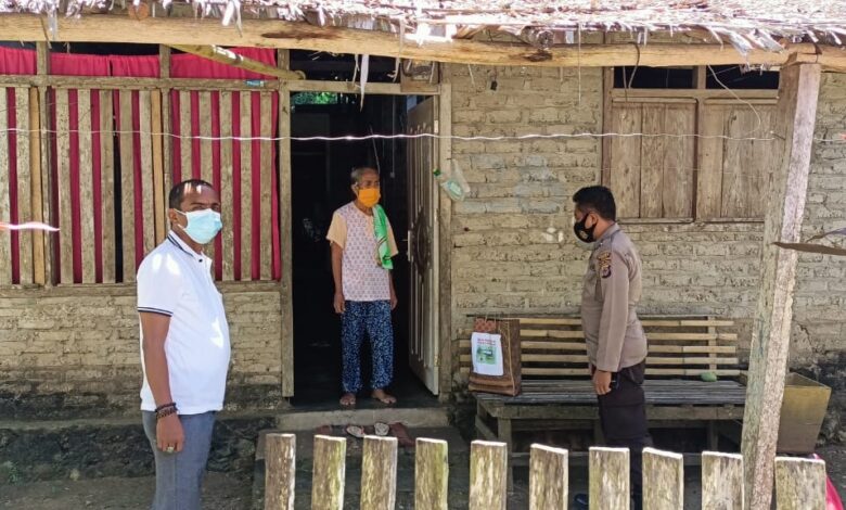 Luwuk.today, Jajaran Polres Banggai terus menyalurkan bantuan (sosial bansos) kepada warga yang melaksanakan isolasi mandiri (Isoman) akibat terpapar Covid-19. Seperti yang dilakukan aparat Polsek Lamala didampingi aparat desa, Jumat (23/7/2021).