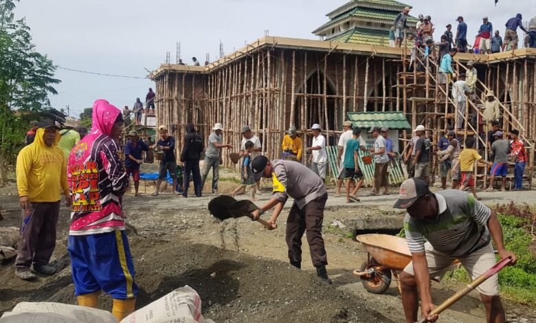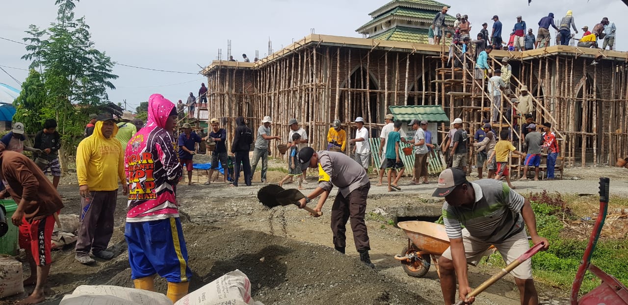 Jalin Sinergitas, TNI-Polri Kerja Bakti Pembangunan Masjid bersama Warga