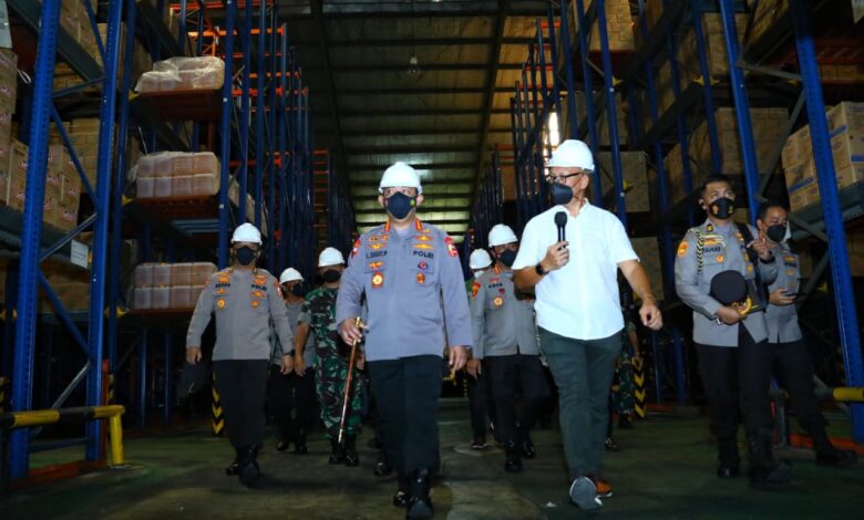 Luwuk.today, Bekasi – Kapolri Jenderal Listyo Sigit Prabowo meninjau langsung pabrik minyak goreng PT Mikie Oleo Nabati Industri Bekasi, Jawa Barat, Rabu (16/3/2022). Dalam pengecekannya, Kapolri memastikan proses produksi hingga pendistribusian ke pasar untuk memenuhi kebutuhan masyarakat.