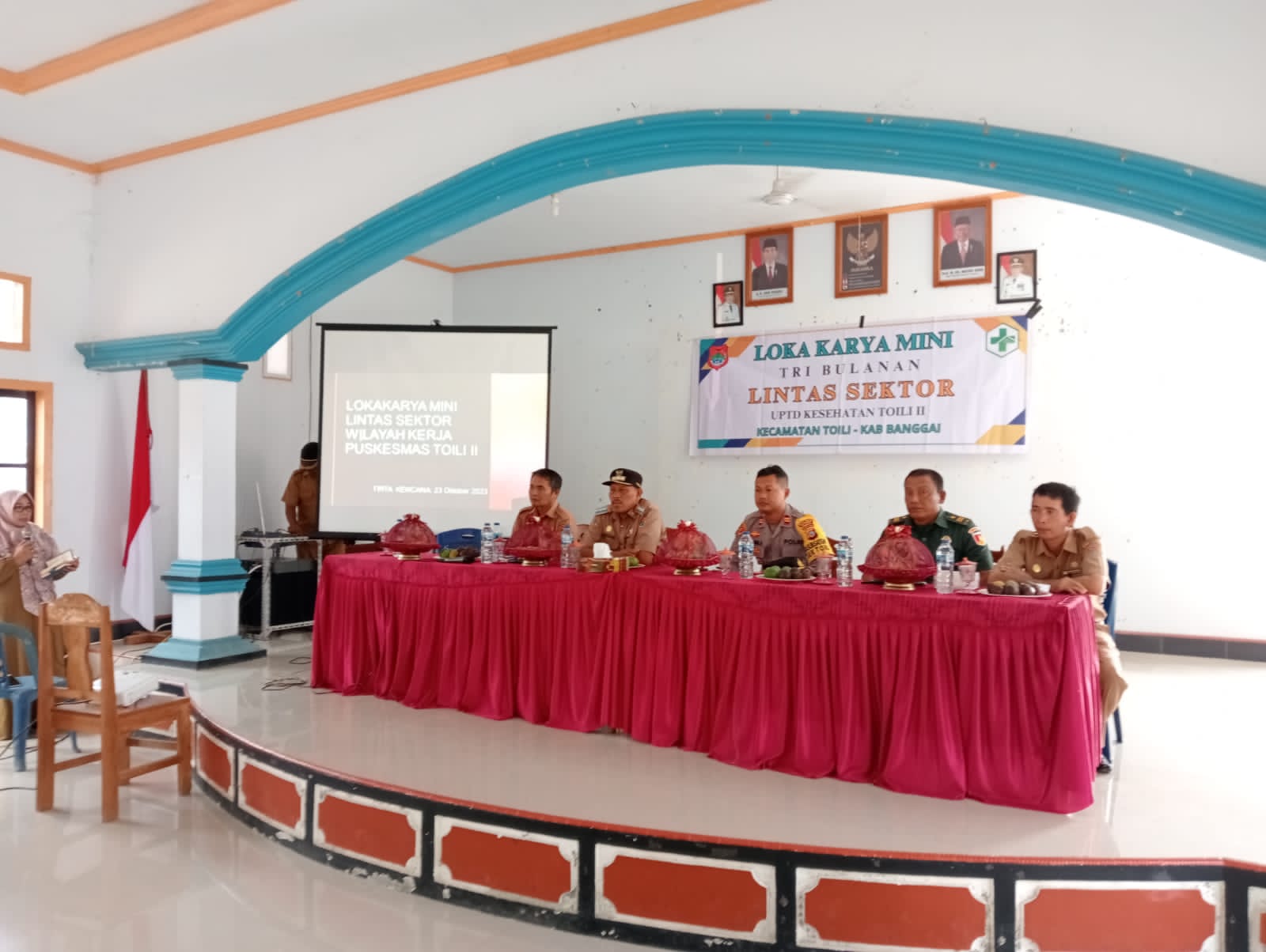 Luwuk.today, Kapolsek Toili IPTU Nanang Afrioko, SH, MH menghadiri kegiatan lokakarya mini lintas sectoral wilayah kerja Puskesmas Toili II di BPU Desa Tirtakencana Kecamatan Toili, Senin (23/10/2023) pukul 09.00 Wita.