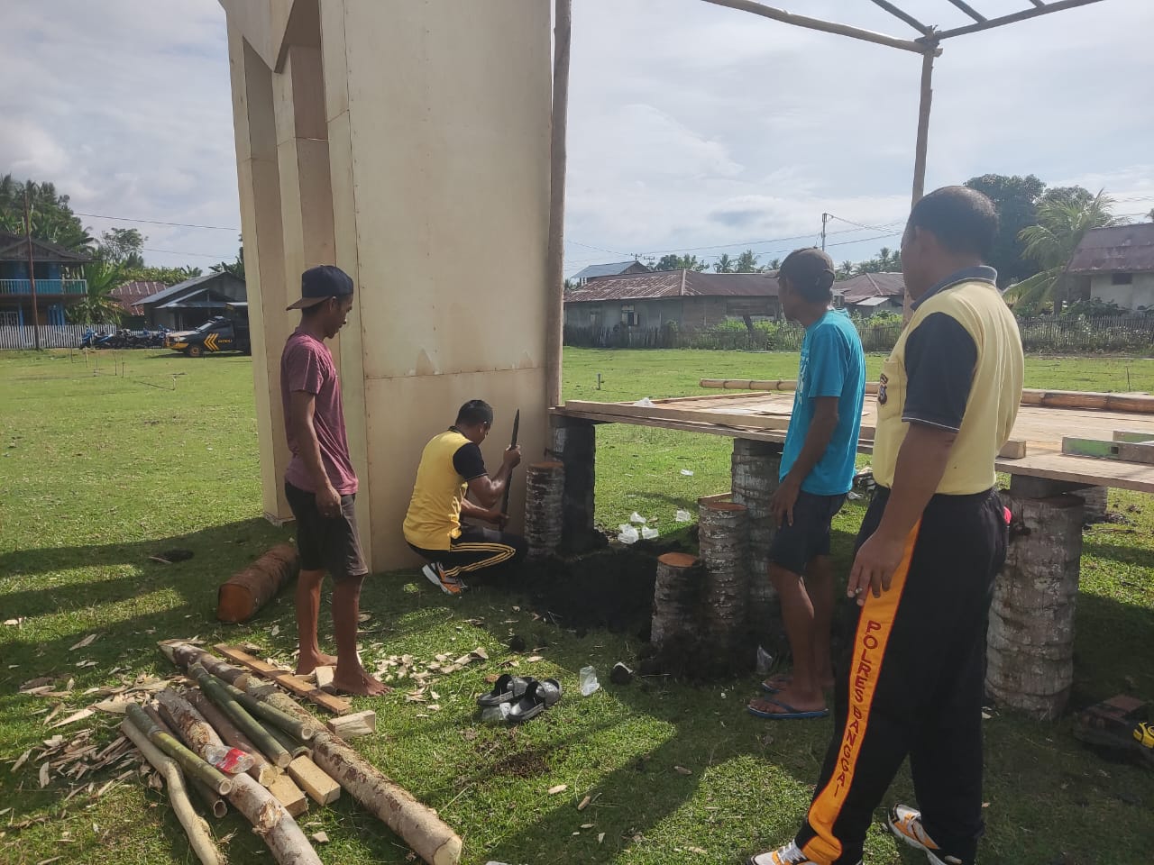 Jelang Hari Jadi Kecamatan Kintom, Polisi Bersama Pemerintah Kecamatan Laksanakan Kerja Bakti