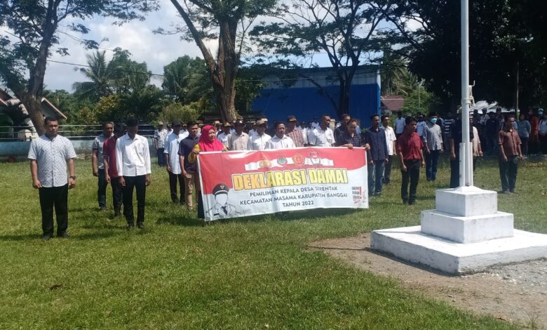 Luwuk.today, Dalam rangka menciptakan situasi kamtibmas yang kondusif selama pelaksanaan Pemilihan Kepala Desa (Pilkades) serentak gelombang I tahun 2022, Polsek jajaran Polres Banggai bersama Forkopimcam menggelar Deklarasi Damai.