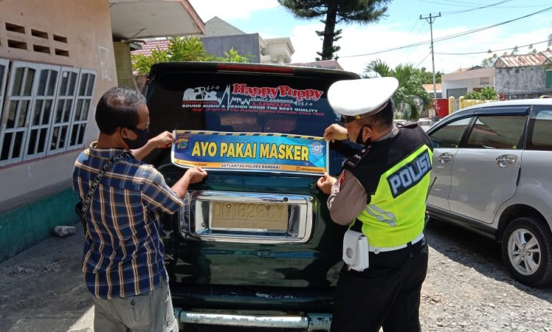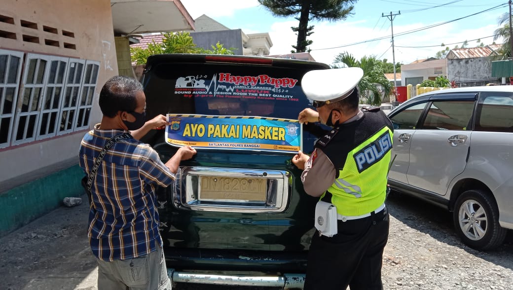 Kampanye Prokes, Satlantas Polres Banggai Pasang Stiker Ayo Pakai Masker