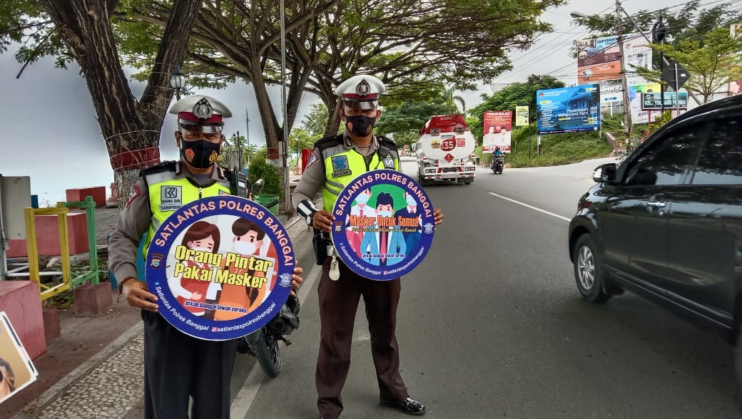 Hal itu dilakukan personel Satlantas Polres Banggai melalui kampanye penggunaan masker yang berlangsung Jalan Mandapar, Kelurahan Tombang Permai, Kecamatan Luwuk Selatan, Kabupaten Banggai, Senin (30/11).