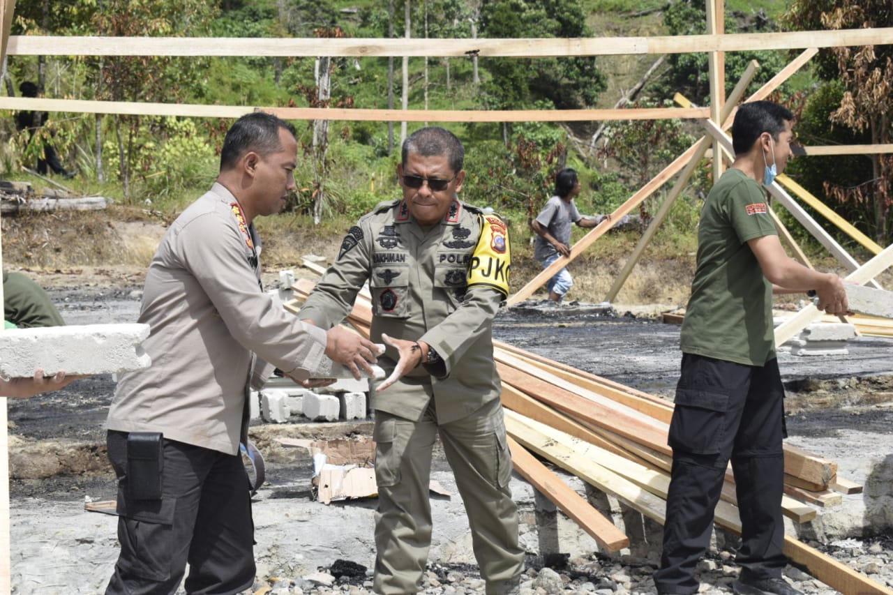 Luwuk Today, Palu – Perhatian serius dilakukan Polda Sulawesi Tengah untuk membangun kembali rumah yang dibakar kelompok MIT Poso di Lemban Tongoa Kec. Palolo Kab. Sigi, Sulawesi Tengah,