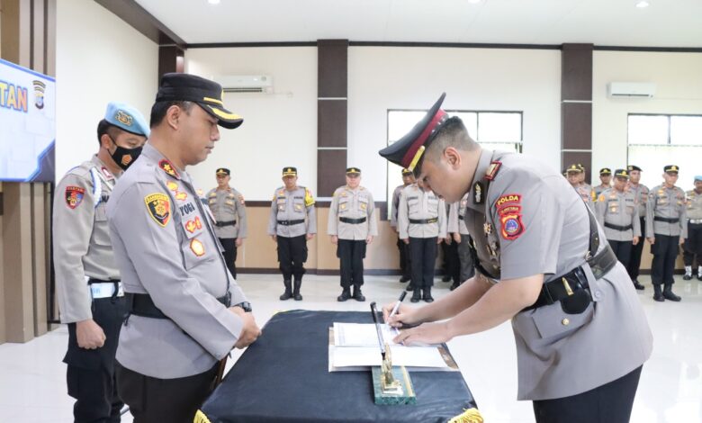 Luwuk.today, Kapolres Banggai AKBP Yoga Priyahutama SH, SIK, MH, memimpin upacara Serah Terima Jabatan (Sertijab) Kasat Lantas Polres Banggai di Aula Rupatama, Mapolres Banggai, Jumat (21/10/2022).