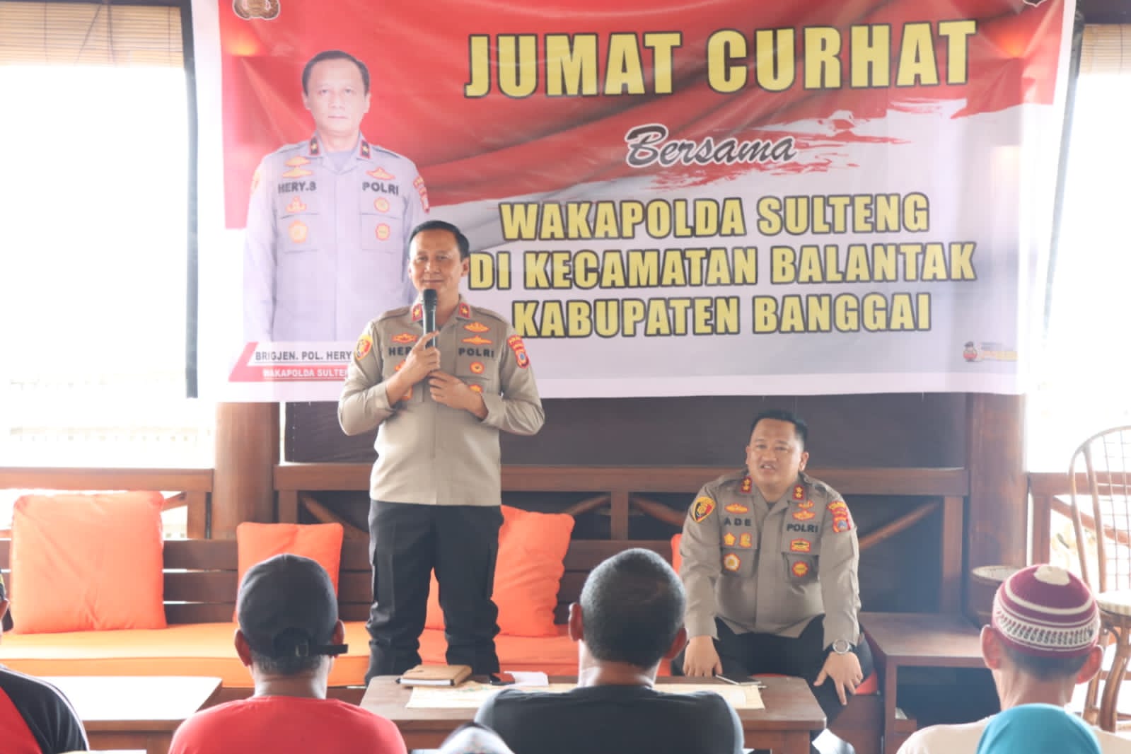 Luwuk.today, Wakapolda Sulteng Brigjen Pol Hery Santoso SIK, MH menggelar Program Jumat Curhat bersama masyarakat di Desa Pulo 2, Kecamatan Balantak Utara, Kabupaten Banggai, Jumat (16/3/2023) siang.