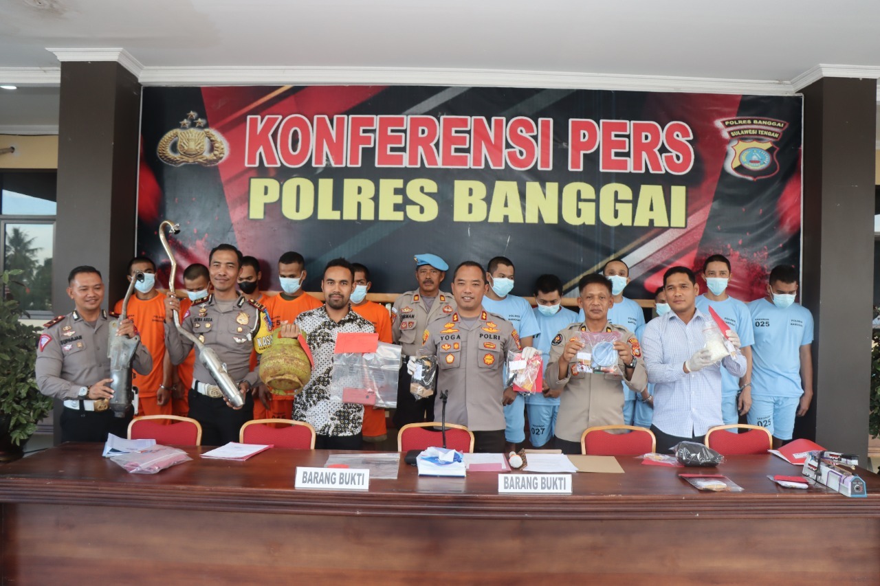 Kapolres Banggai Pimpin Konferensi Pers Pengungkapan Kasus Tindak Pidana Selama April-Mei 2022