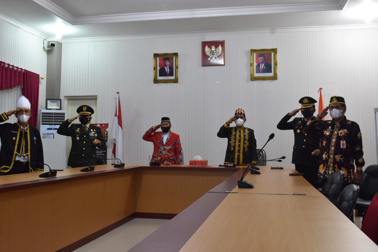 Luwuk.today, Kapolres Banggai AKBP Satria Adrie Vibrianto SIK, MH, mengikuti upacara peringatan Hari Lahir Pancasila 1 Juni secara virtual di ruang rapat khusus kantor Bupati Banggai di kawasan Bukit Halimun, Selasa (1/6/2021).