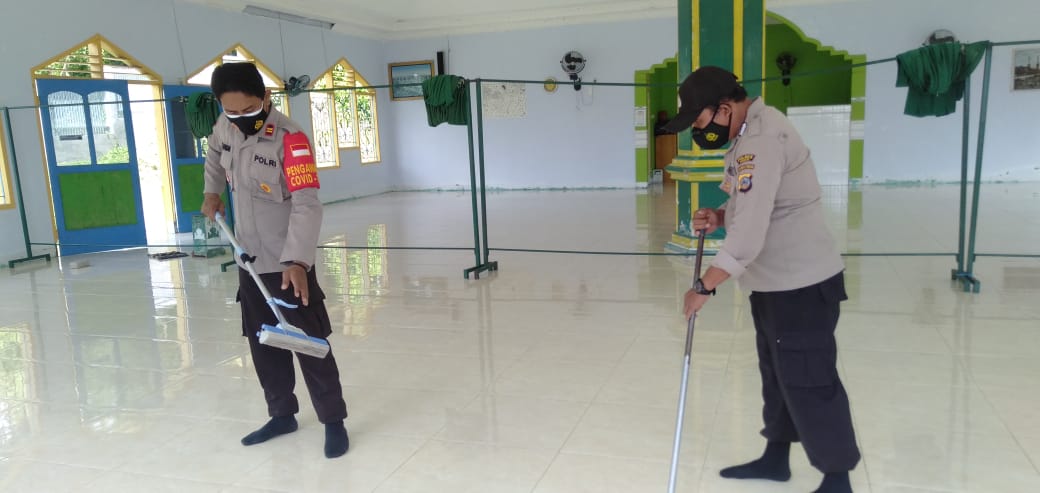 Selain membersihkan halaman dan dalam masjid, kata Iptu Zulfikar pihaknya melakukan penyemprotan cairan disinfektan guna mencegah penularan dan memutus mata rantai penyebaran Covid-19.