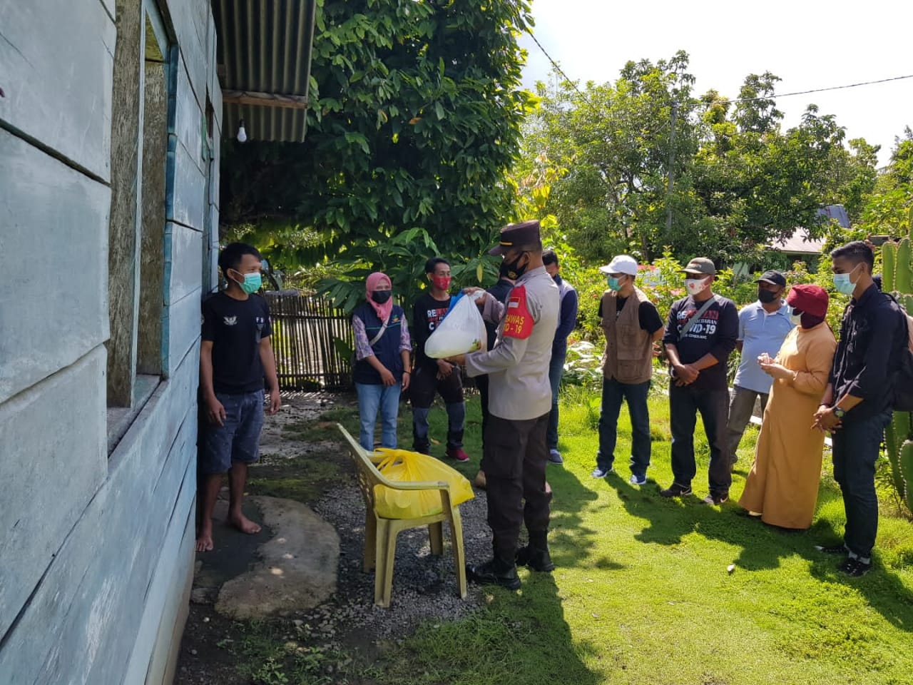 Luwuk.today, Kapolsek Lamala AKP Inyoman Dunia bersama Camat Masama dan Kepala Puskesmas, menyalurkan puluhan paket bantuan sosial (bansos) kepada warga yang melaksanakan Isolasi Mandiri (Isoman), Sabtu (14/8/2021).