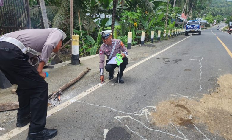 Setelah menerima laporan, personel Satlantas Polres Banggai segera melakukan olah tempat kejadian perkara (TKP), membuat sketsa kecelakaan, serta mengamankan barang bukti.
