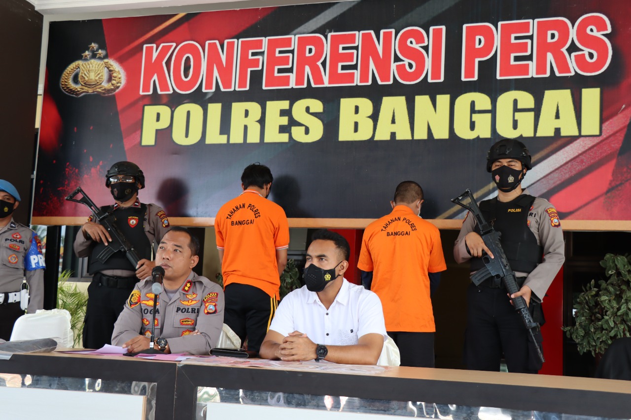 Konferensi pers tersebut dipimpin langsung Kapolres Banggai AKBP Yoga Priyahutama SH, SIK, MH, didampingi Kasat Reskrim Iptu Adi Herlambang.