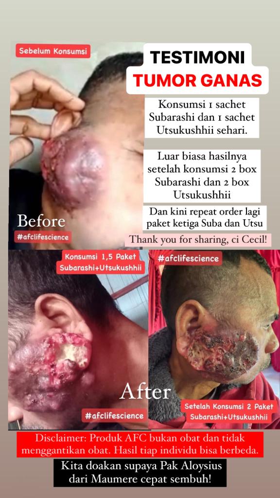 Setelah mengkonsumsi 1 sachet Subarashi dan 1 sachet Utsukushhii setiap harinya, Pak Aloysius melihat hasil yang luar biasa. Tumor ganas yang sebelumnya menakutkan itu mulai mengecil dan bahkan mengering. Perubahan yang terjadi sungguh mengagumkan, tetapi apa yang membuat produk ini begitu efektif?