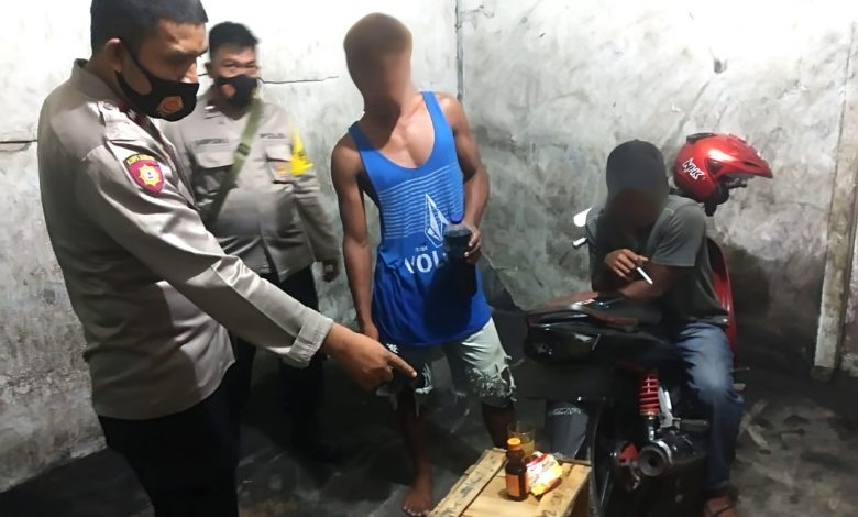 Luwuk Today, Personel Patroli Polsek Luwuk menemukan dua pemuda yang sedang mengonsumsi minuman keras (miras) di kompelks pelabuhan rotan, Kelurahan Luwuk, Kecamatan Luwuk, Kabupaten Banggai, Rabu malam (20/1/2021).