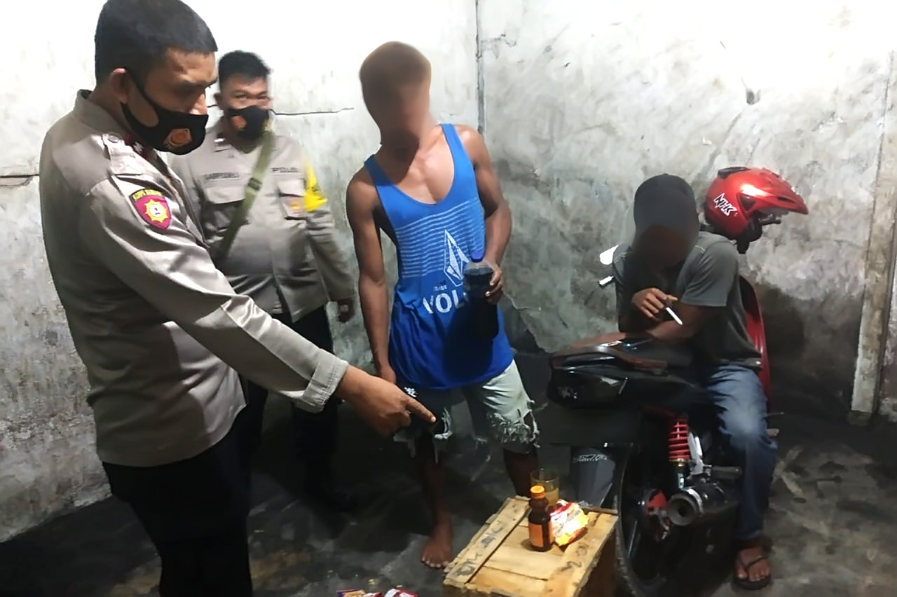 Kedua pemuda yang diamankan polisi saat itu sedang meneguk miras jenis cap tikus yang telah dicampur dengan Bir Guinness dan minuman berenergi.