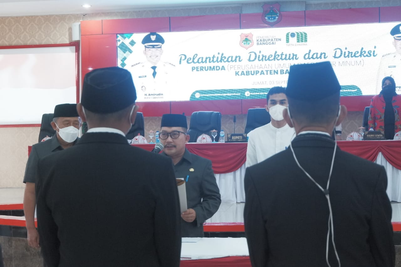 Luwuk.today, Bupati Ir. H Amirudin didampingi Wakil Bupati Banggai Drs. Furqanuddin M melantik secara resmi Direktur dan Direksi Perusahaan Umum Daerah Air Minum (PERUMDA) Kabupaten Banggai, bertempat di Ruang Rapat Umum Setda Kab. Banggai, Jumat (3/9/2021).