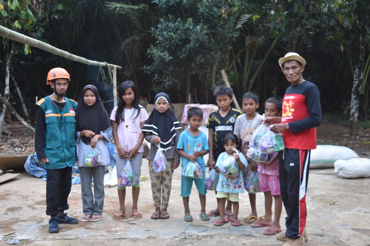 Relawan WIZ Farid mengatakan, tim trauma healing yang diterjunkan membagikan sejumlah snack dan mempersiapkan sejumlah permainan.