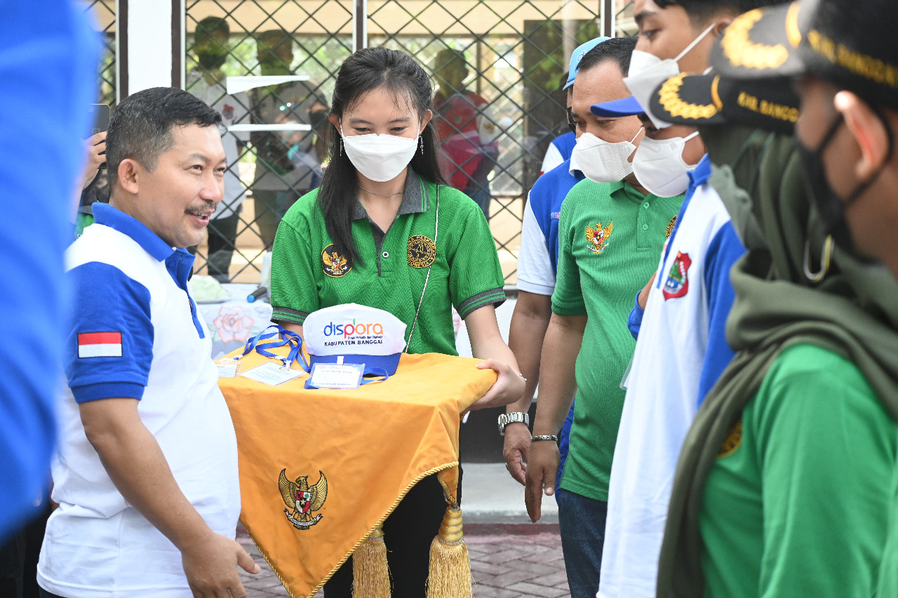 Luwuk.today, Bupati Banggai Ir. H. Amirudin Melepas Kontingen Pekan Olahraga Pelajar Daerah (POPDA) Kabupaten Banggai Tingkat Provinsi se-sulawesi Tengah, bertempat di Alun-Alun Bumi Mutiara Luwuk. Jumat, (19/11/2021).