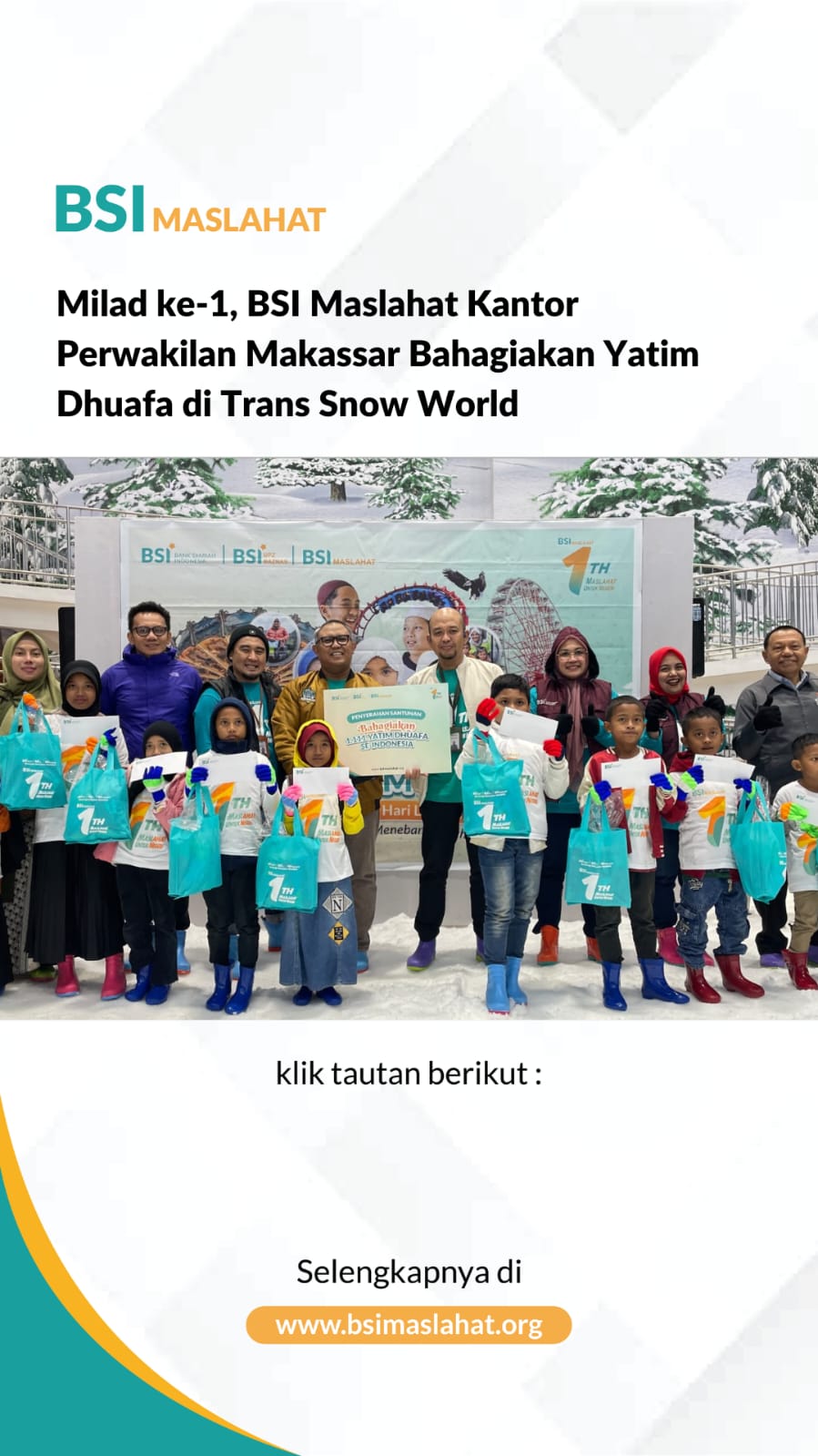 Milad ke-1, BSI Perwakilan Makassar Bahagiakan Yatim Dhuafa di Trans Snow World