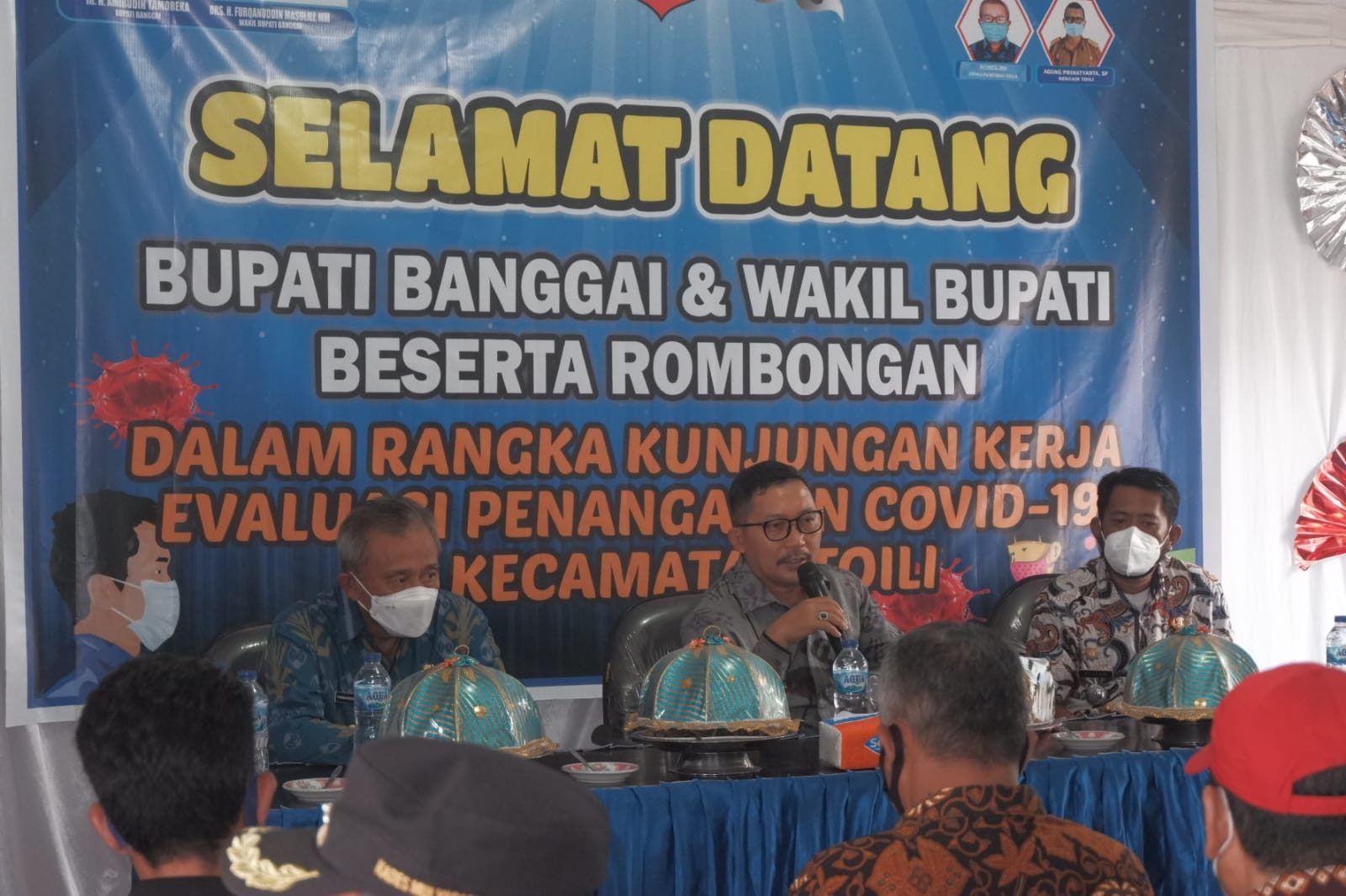 Luwuk.today, Bupati Ir. H. Amirudin didampingi Wakil Bupati Banggai Drs furqanuddin M melakukan kunjungan kerja dalam rangka pengarahan, Pemantauan dan Evaluasi Kinerja Kecamatan dalam Penanganan Covid 19 di 3 Kecamatan. diantaranya, Kecamatan Moilong, Kecamatan Toili, Dan Kecamatan Toili Barat, kamis (2/9/2021).