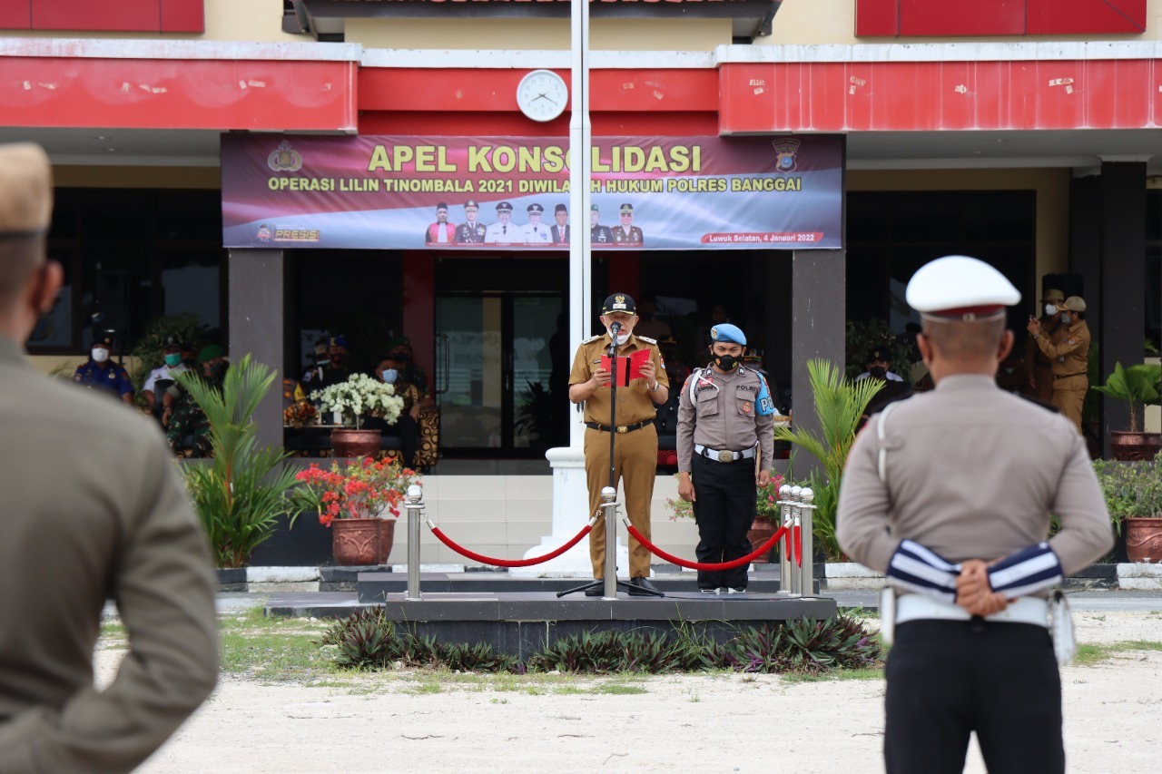 Dalam sambutan tertulis Kapolres Banggai yang dibacakan Wakil Bupati Banggai mengatakan, Apel Konsolidasi yang diselenggarakan sekarang ini merupakan momentum penting untuk mengevaluasi kinerja saat pelaksanaan operasi Lilin Tinombala-2021.