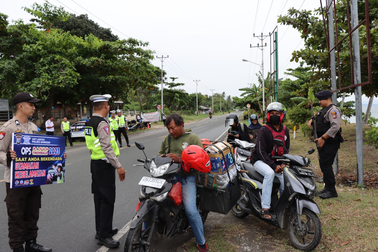 Operasi Patuh Tinombala 2023, Polres Banggai Bagikan Brosur dan Stiker Imbauan Kamseltibcar