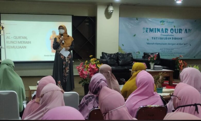Acara pun dilanjutkan dengan pemaparan materi dari Ustadzah Rahmawati Basarang dengan tema “Mulia Bersama Alquran.”