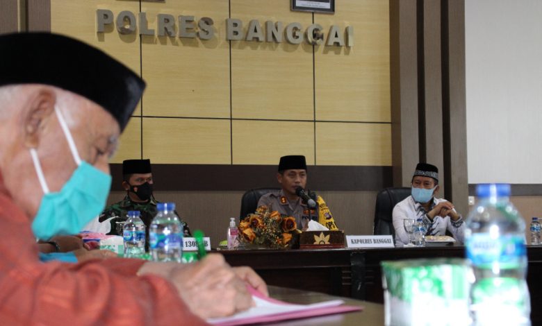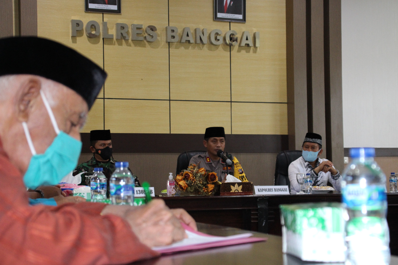 Kapolres Banggai AKBP Satria Adrie Vibrianto SIK, MH, langsung menggagas pertemuan dengan mengundang sejumlah tokoh lintas agama guna menggelar pertemuan di Mapolres Banggai, Senin (29/3/2021).