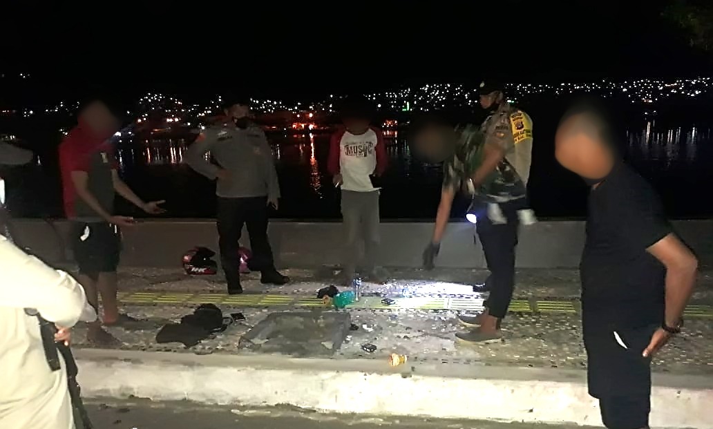 Luwuk.today, Personel patroli Polsek Luwuk membubarkan aksi pesta miras sekelompok pemuda di dua lokasi di Kota Luwuk, Minggu (31/10/2021) malam.