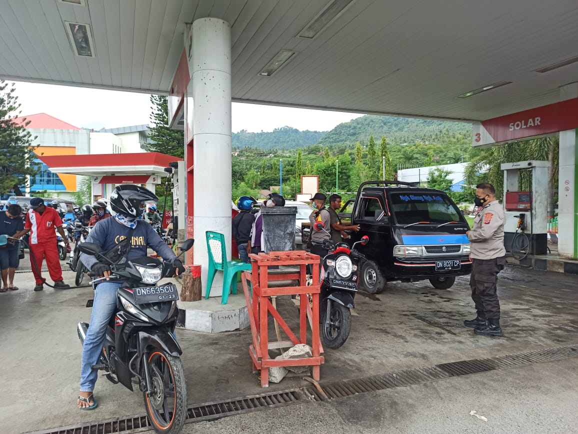 Luwuk.today, Personel Patroli Polsek Luwuk melakukan pengawasan pengisian /Bahan Bakar Minyak (BBM) di sejumlah Stasiun Pengisian Baan Bakar Umum (SPBU) Kota Luwuk, Kabupaten Banggai, Rabu (17/11/2021).