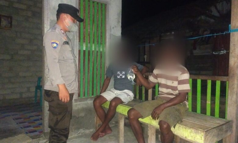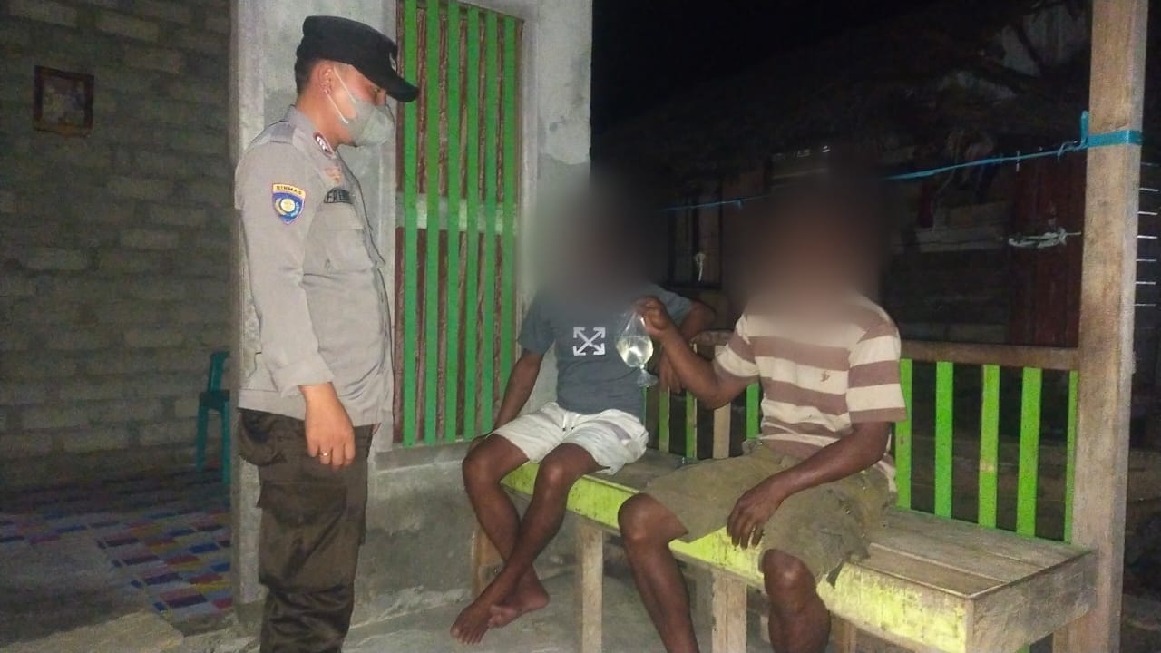 Kedua warga ini ditemukan saat petugas menggelar patroli rutin dan menerima informasi masyarakat adanya warga yang sedang mengonsumsi miras di teras rumah.
