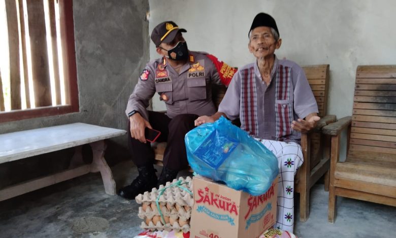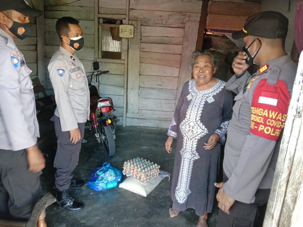 Luwuk.Today, Dua warga kurang mampu di Kecamatan Toili, Kabupaten Banggai mendapat bantuan sembako dari aparat kepolisian setempat, Senin (22/2/2021).