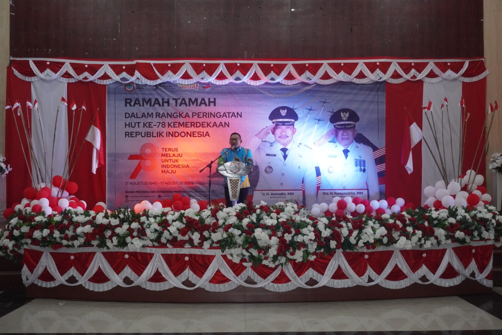 Bupati Banggai H. Amirudin Dalam Sambutannya Mengatakan, sangat merasa senang, kemeriahan HUT RI tidak hanya terlaksana di Kota Luwuk, tapi juga di sejumlah kecamatan di Kabupaten Banggai, dan ucapan terima kasih kepada anggota paskibraka yang sukses menjalankan tugasnya dalam upacara pengibaran dan penurunan bendera yang dilaksanakan di Lapangan Tribun Mirqan Center, Kompleks Kantor Bupati Banggai Bukit Halimun, Kelurahan Tombang Permai, Kecamatan Luwuk Selatan. Pada Upacara pengibaran bendera merah putih pagi tadi dan Penurunan sore tadi.