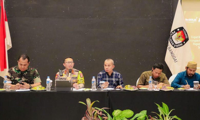 Luwuk.today, Banggai, 27 Oktober 2024 – Kapolres Banggai AKBP Putu Hendra Binangkari menghadiri rapat koordinasi terkait persiapan Debat Publik Pilkada 2024 yang akan berlangsung di Hotel Estrella, Luwuk. Dalam rapat tersebut, Kapolres bersama pihak terkait memastikan seluruh aspek keamanan dan teknis acara berjalan optimal.