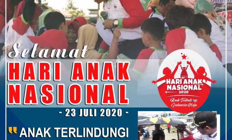 Peringatan Hari Anak Nasional 2020, Mengusung tema “Anak Terlindungi, Indonesia Maju” dan tagline “Anak Indonesia Gembira di Rumah”, dengan melibatkan seluruh anak Indonesia, termasuk Anak yang Memerlukan Perlindungan Khusus (AMPK).
