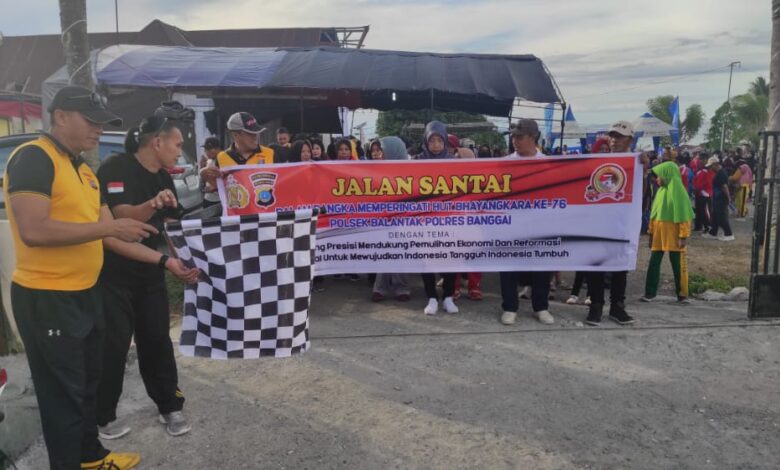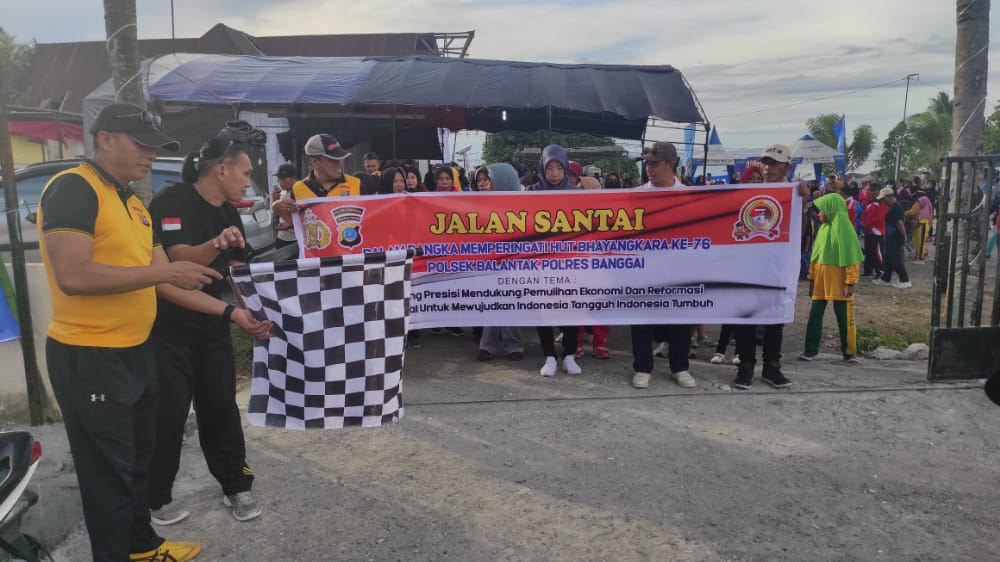 Luwuk.today, Dalam rangka memperingati Hari Bhayangkara ke 76 tahun 2022, Polsek Balantak menggelar kegiatan jalan santai, Senin (27/6/2022).