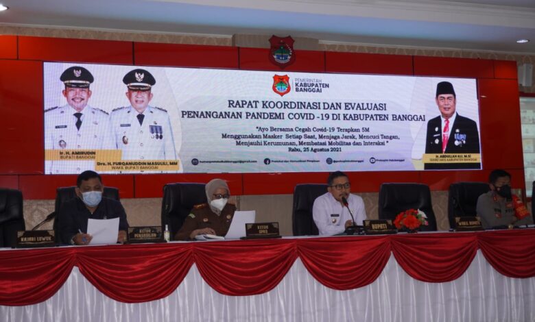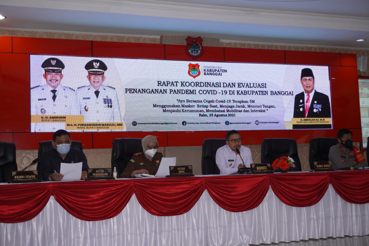 Luwuk.today, Bupati Banggai Ir. H. Amirudin Pimpin Rapat Koordinasi dan Evaluasi Penanganan Pandemi Covid-19 di Kabupaten Banggai, bertempat diruang rapat umum Setda Banggai, Rabu (25/8/2021).