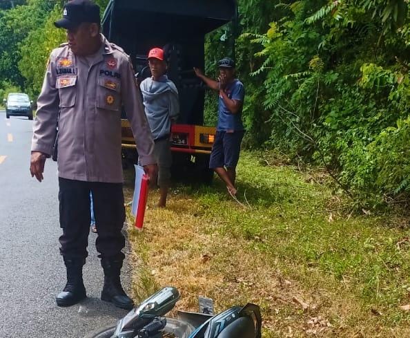 Polisi Amankan TKP Laka Lantas Sepeda Motor di Bunta