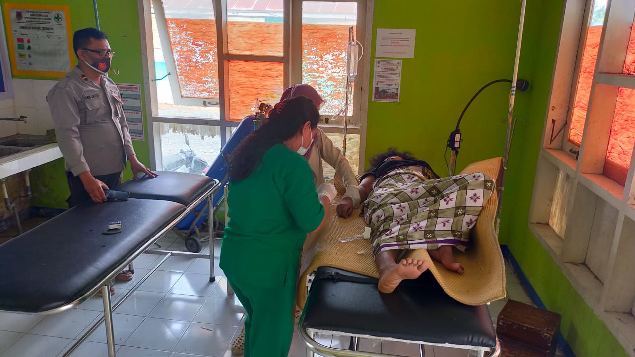 “Bhabinkamtibmas Briptu Frendi Kamasi yang tiba di lokasi langsung mengevakuasi korban ke Puskesmas Bunta untuk mendapatkan perawatan medis. Hingga kini, korban dalam kondisi perawatan medis Puskesmas Bunta,” tutur Iptu Nanang.