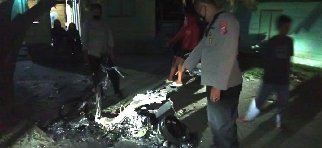 Polisi Datangi TKP Terbakarnya Satu Unit Motor di Pagimana