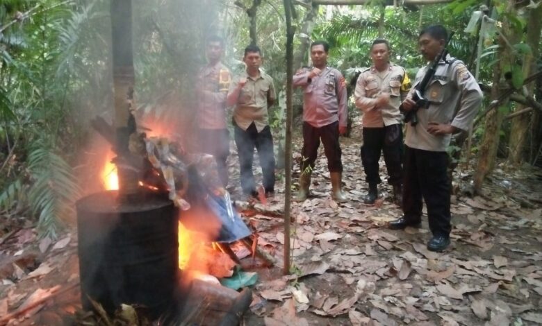 Polisi Musnahkan Satu Lokasi Penyulingan Cap Tikus di Perkebunan Toili