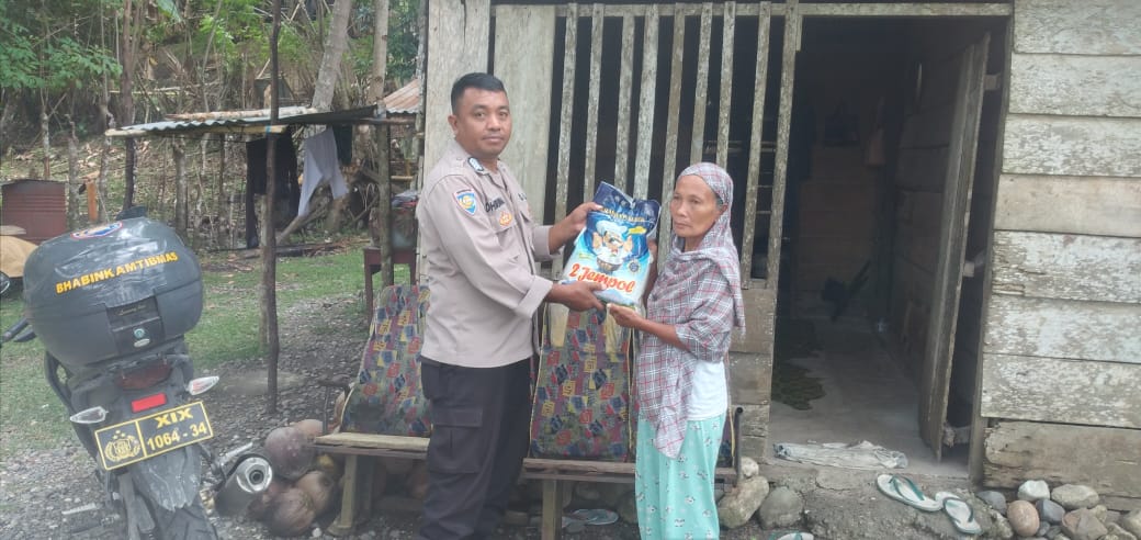 Luwuk.today, Sebagai bentuk kepedulian Polri kepada masyarakat, Polsek Kintom kembali menyalurkan bantuan beras 5 kilo kepada masyarakat yang terdampak pasca penyesuaian harga Bahan Bakar Minyak (BBM) dan Inflasi di Kabupaten Banggai, Kamis (6/10/2022).