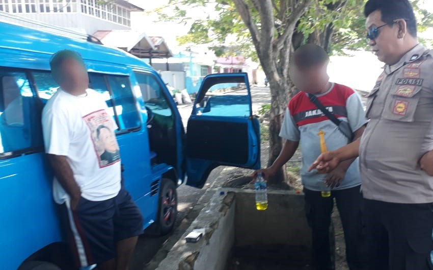 Luwuk.today, Polisi menemukan seorang oknum Sopir angkot dan ojek tengah mengonsumsi miras jenis cap tikus di kompleks Jalur 2 Tanjung Sari, Kelurahan Karaton, Kecamatan Luwuk, Kabupaten Banggai.