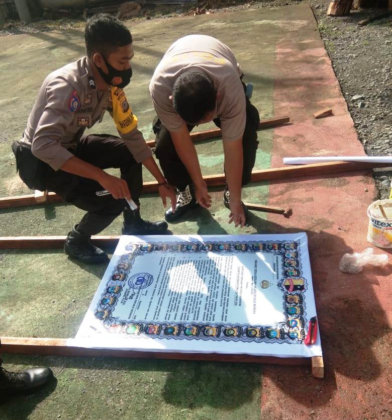 Polres Banggai dan Jajaran Pasang Baliho Maklumat Kapolri Terkait Pilkada di Tengah Pandemi