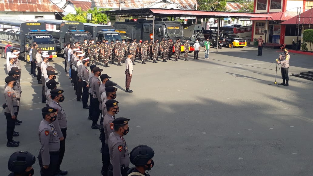 Apel gelar pasukan yang dipimpin langsung Kapolres Banggai AKBP Satria Adrie Vibrianto SIK, MH, itu juga diikuti personel Kodim 1308 Luwuk Banggai, Brimob Luwuk dan pemuda Banser.